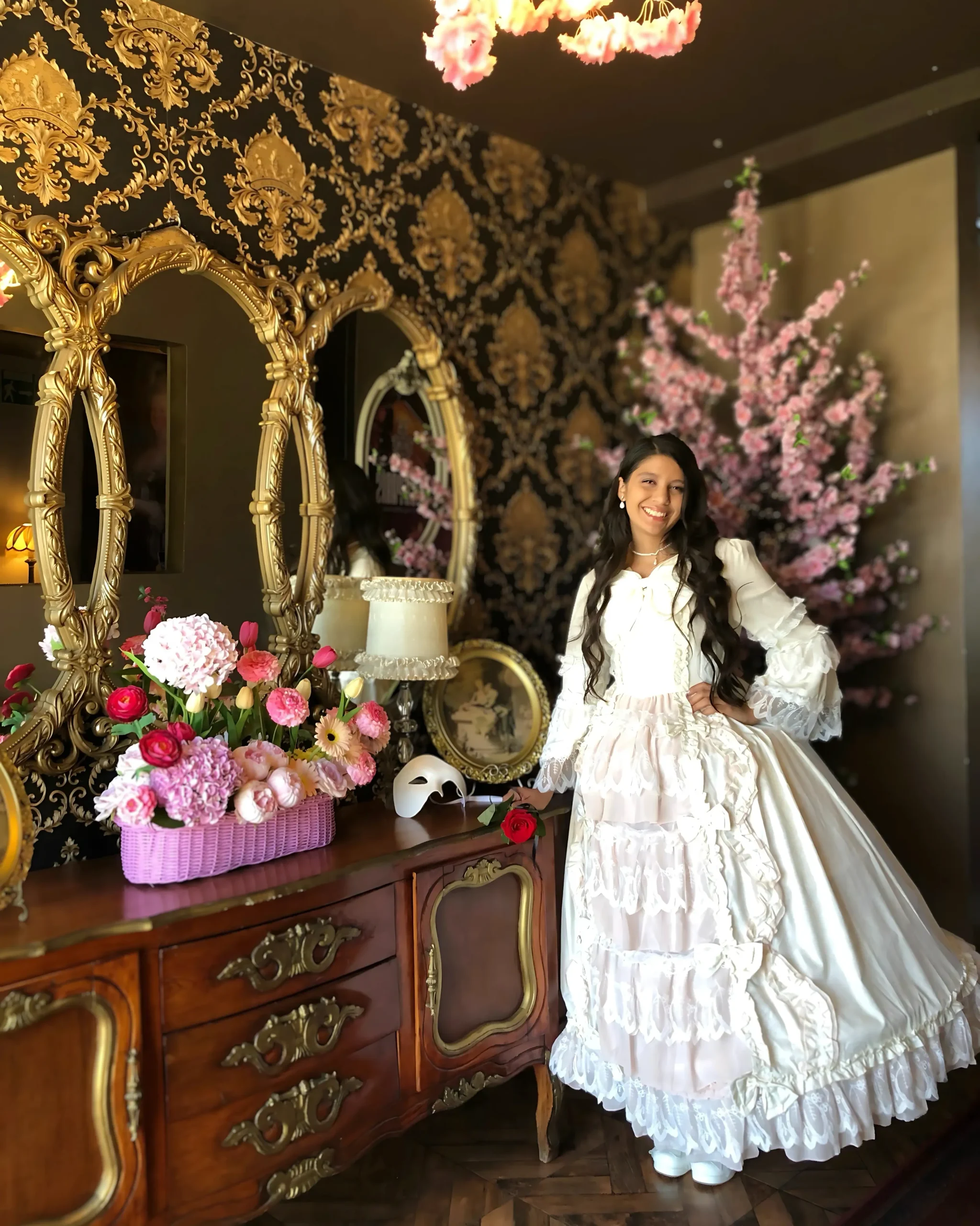 blanco y rosa para la quinceañera.